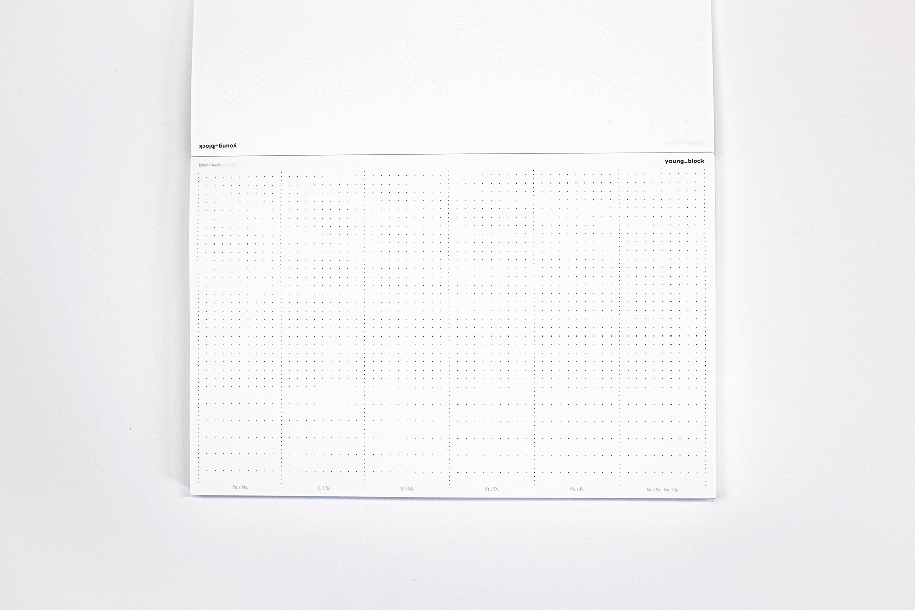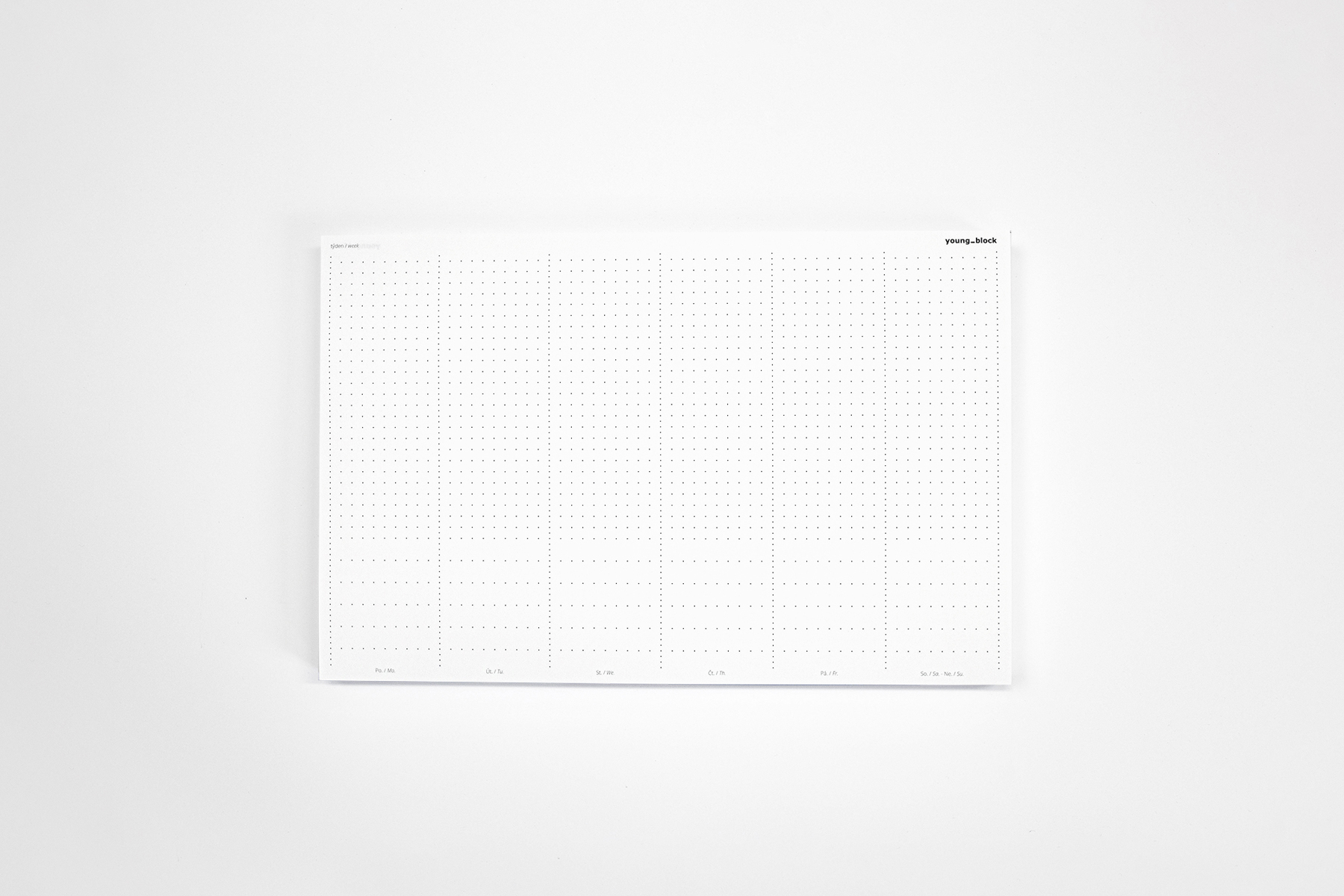 Tento set zahrnuje elegantní blok s tvrdými deskami a minimalistickou ražbou, který vás provede všemi povinnostmi a radostmi roku. V plánování vašeho času vám pomůže i praktický plánovač. Rozvrhněte si svůj týden přehledně na papír, který spolehlivě funguje za všech okolností. Až týden pomine, list jednoduše odtrhněte a z druhé strany využijte jako prostor pro své poznámky a myšlenky.